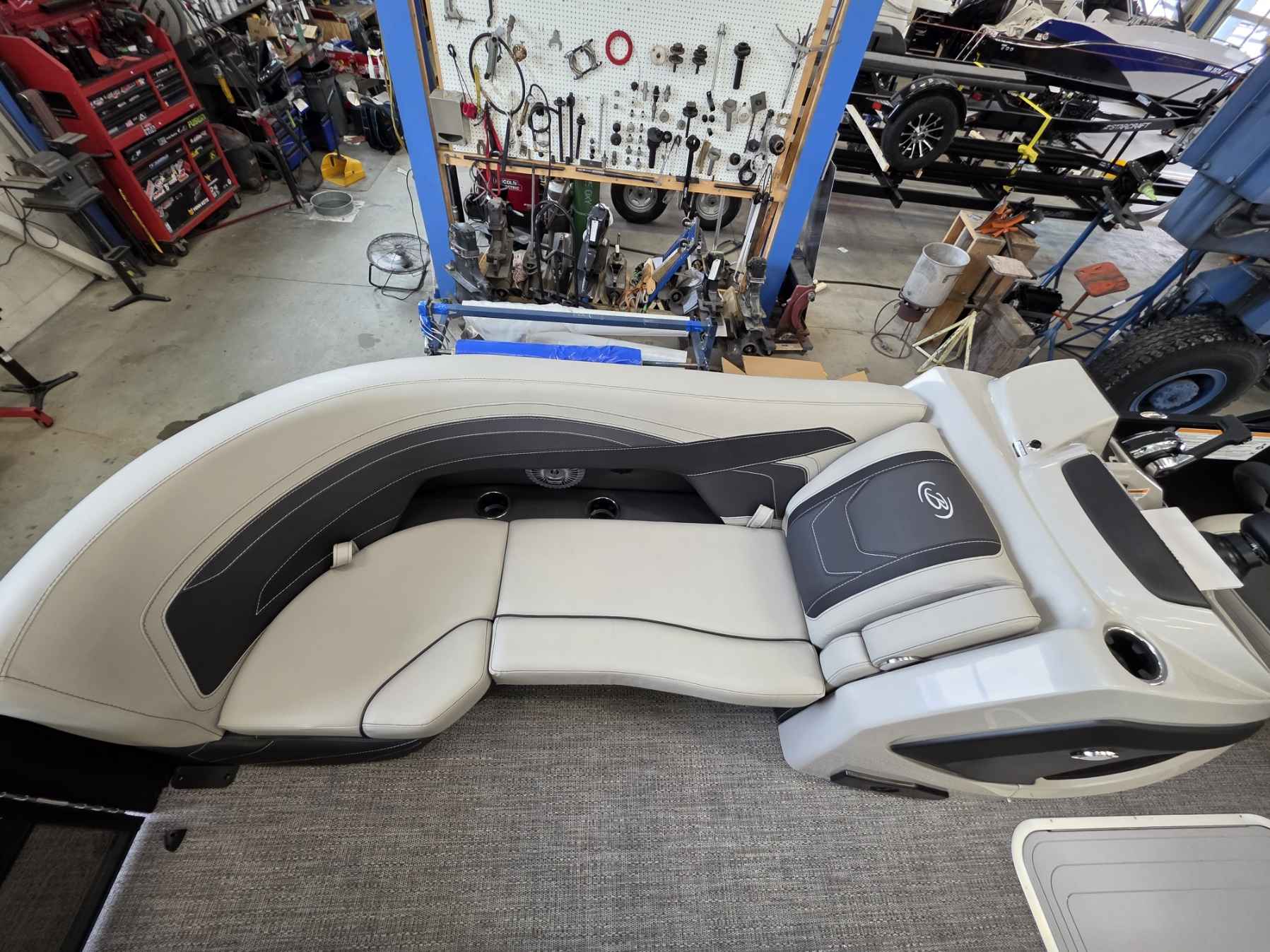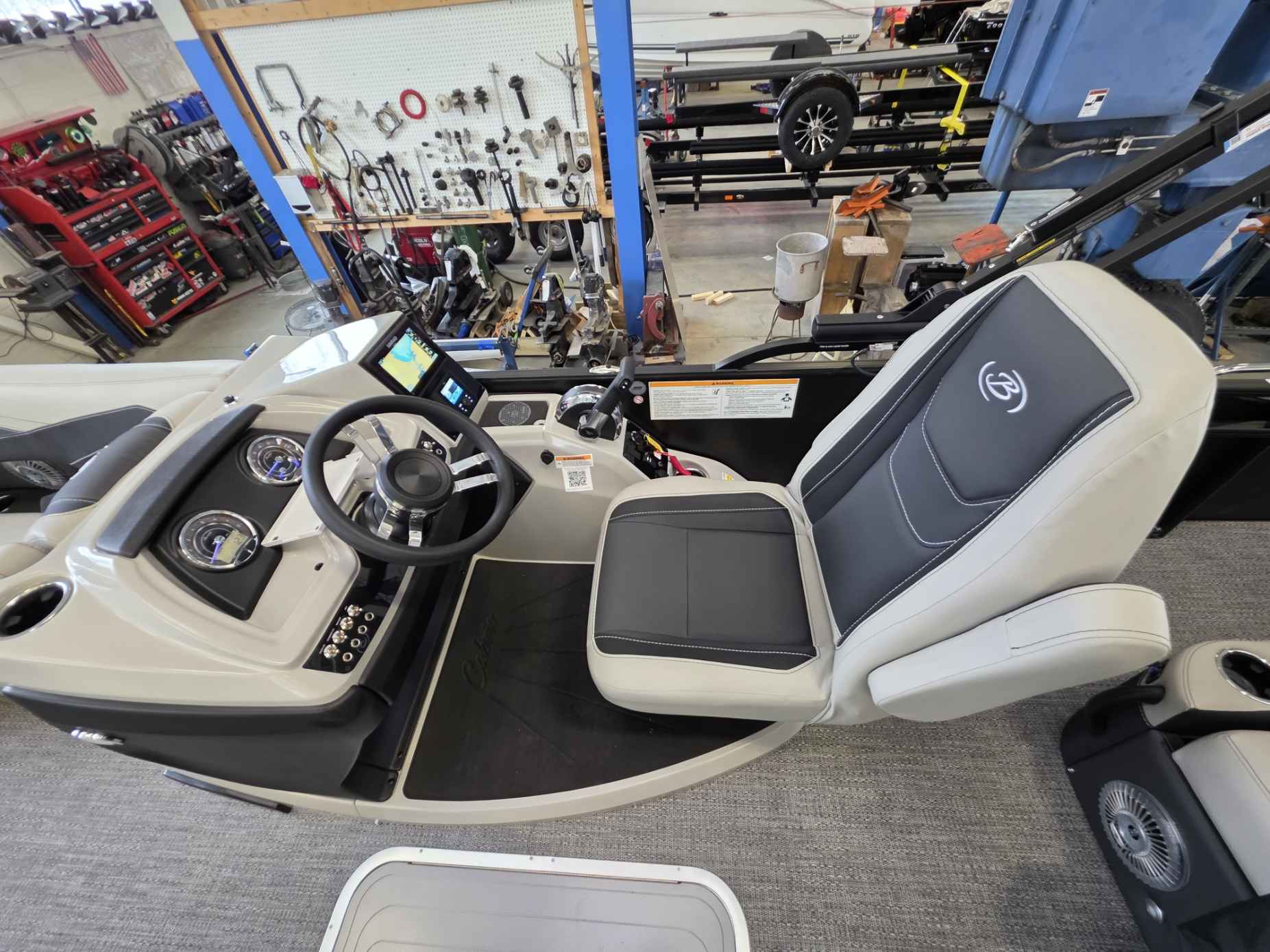- A raised helm platform with a "Yeti-Ready" cupholder and a wireless phone charging station.