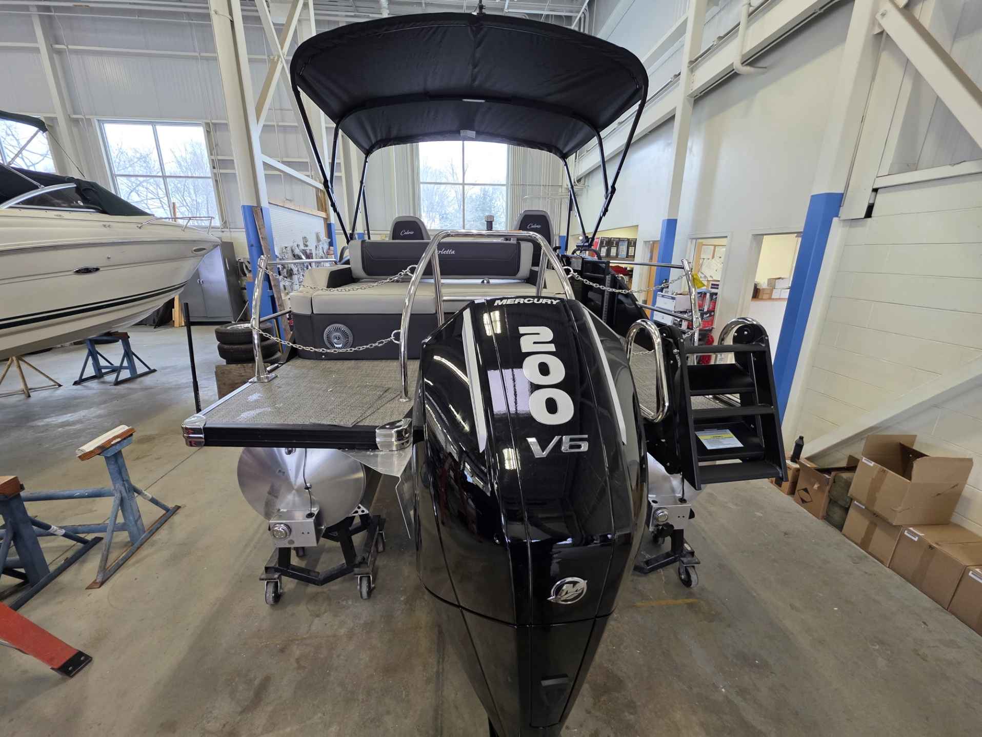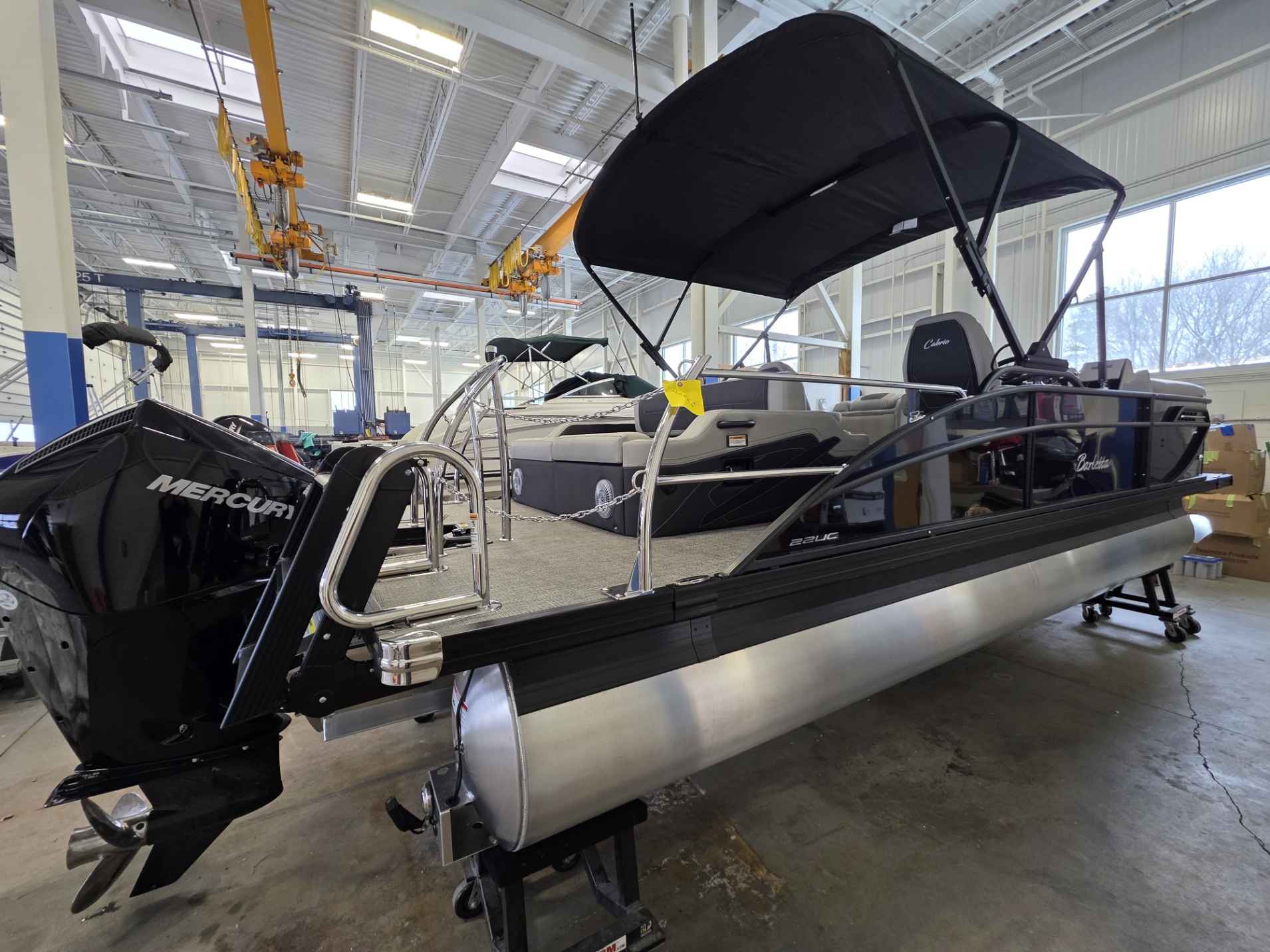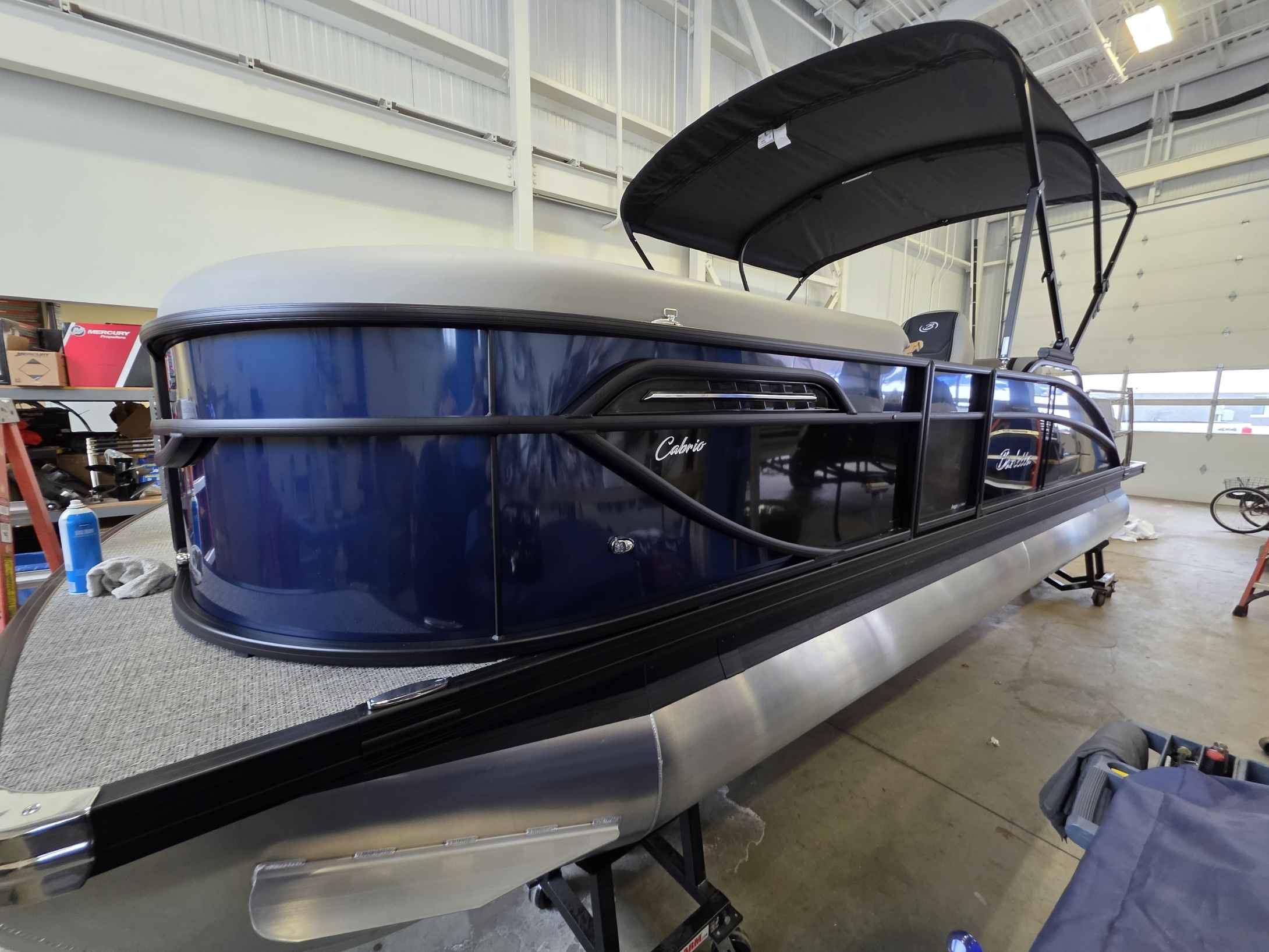 The 2026 Cabrio 22UC is built to last, featuring a robust structure with reinforced nose cones and individually sealed, pressurized pontoon chambers for enhanced safety and durability. Paired with a powerful 200HP Mercury outboard engine , this pontoon delivers confident handling and excellent performance for all your water activities, from leisurely cruises to pulling tubes.