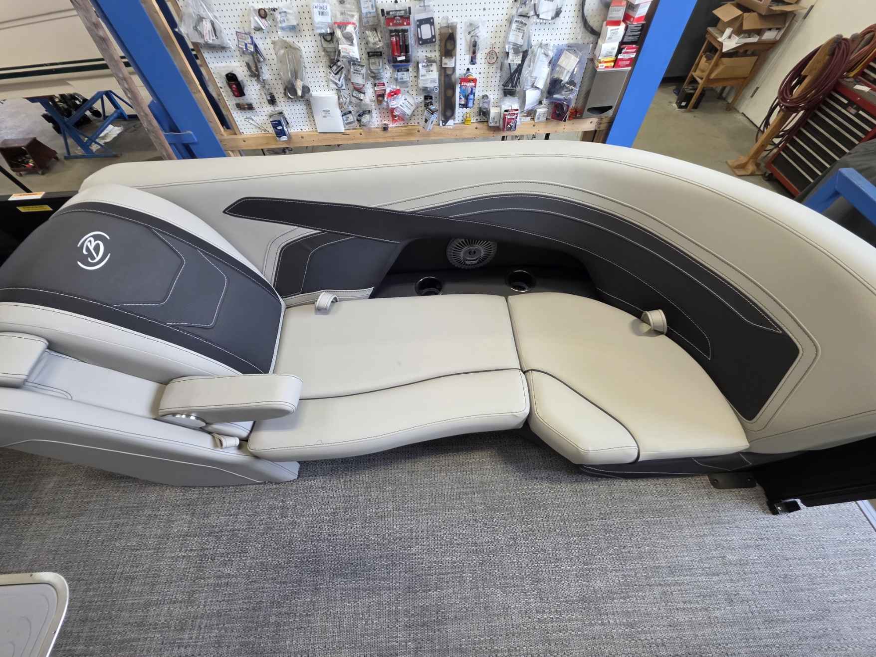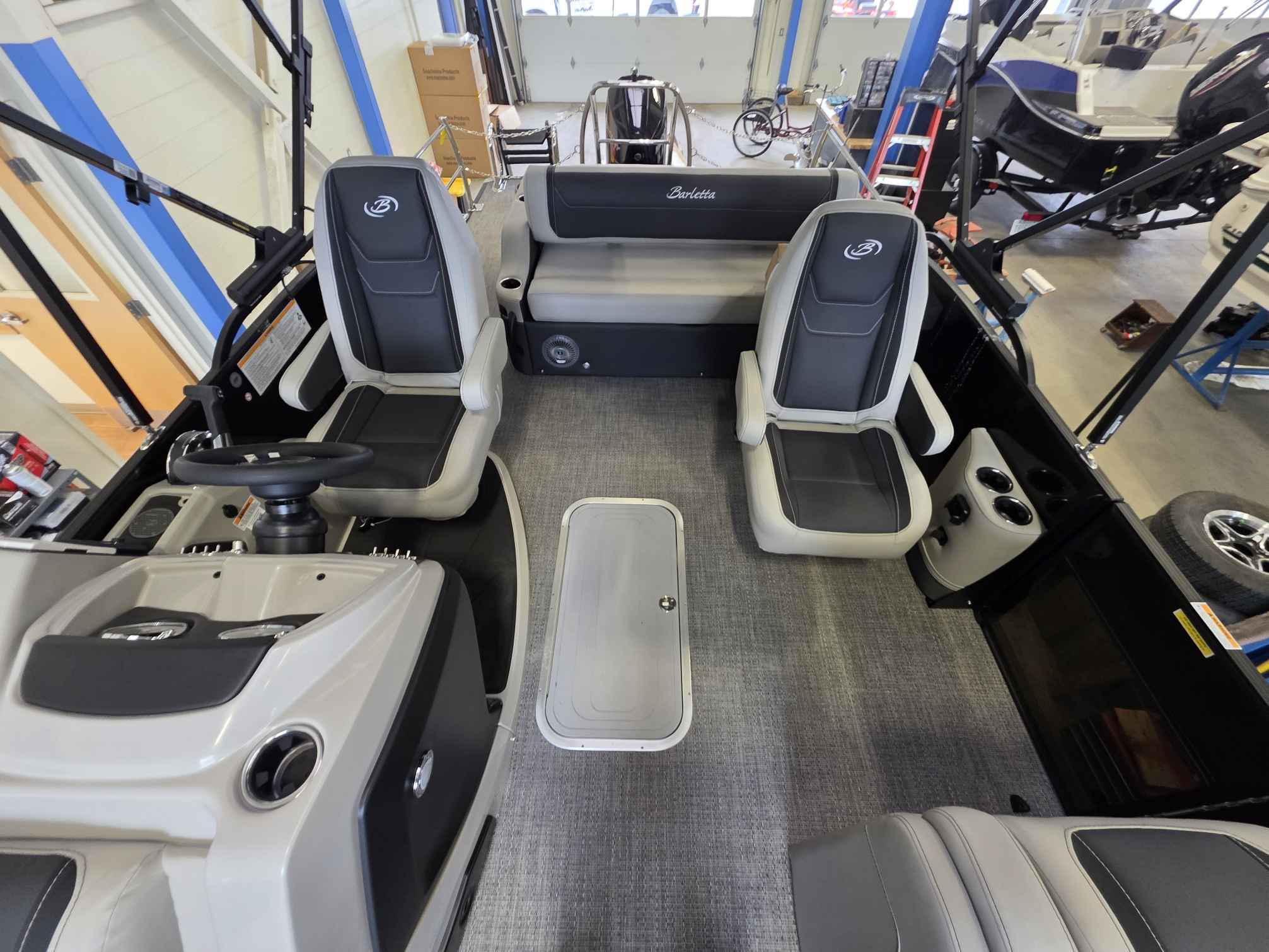 - Abundant Storage: Enjoy a clutter-free deck with ample storage, including large, rotomolded in-seat storage compartments with hinged cushions and a deep in-floor ski locker (with the Triple Toon package).