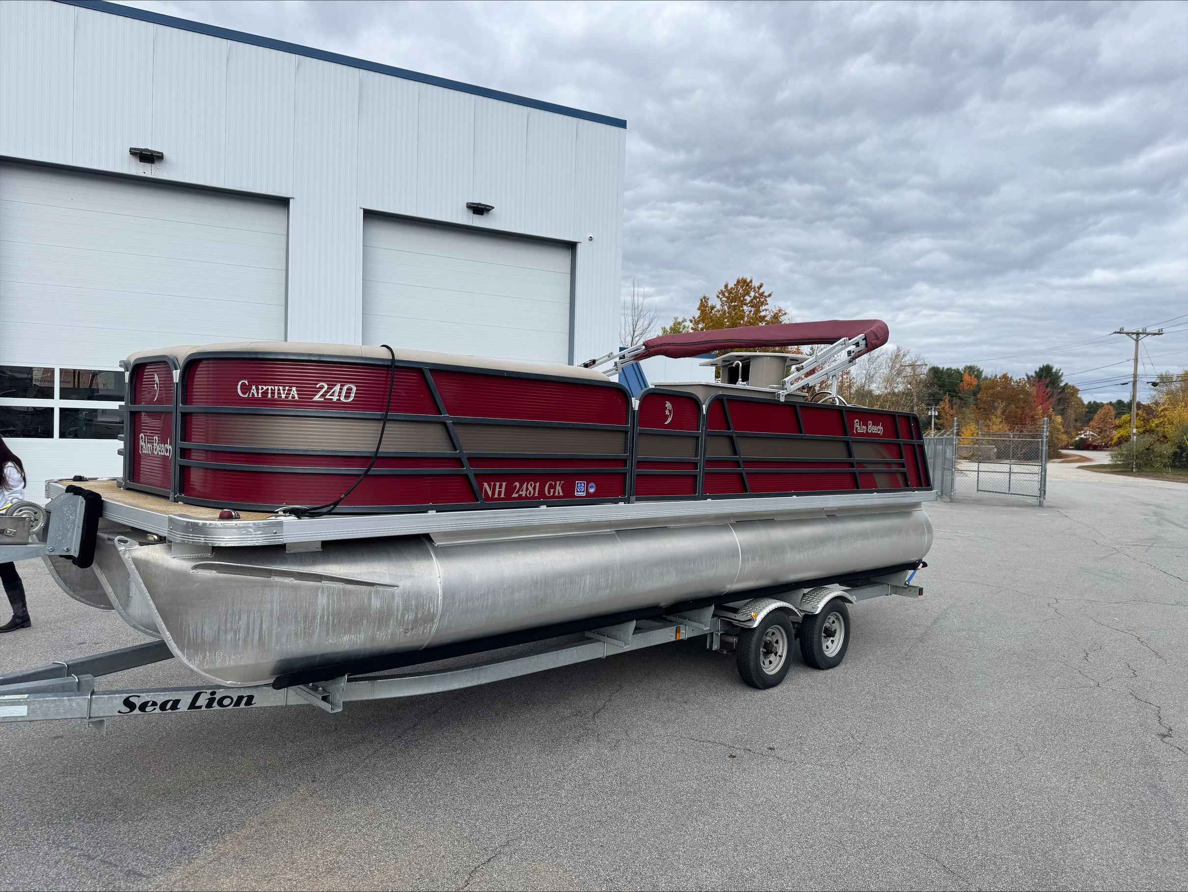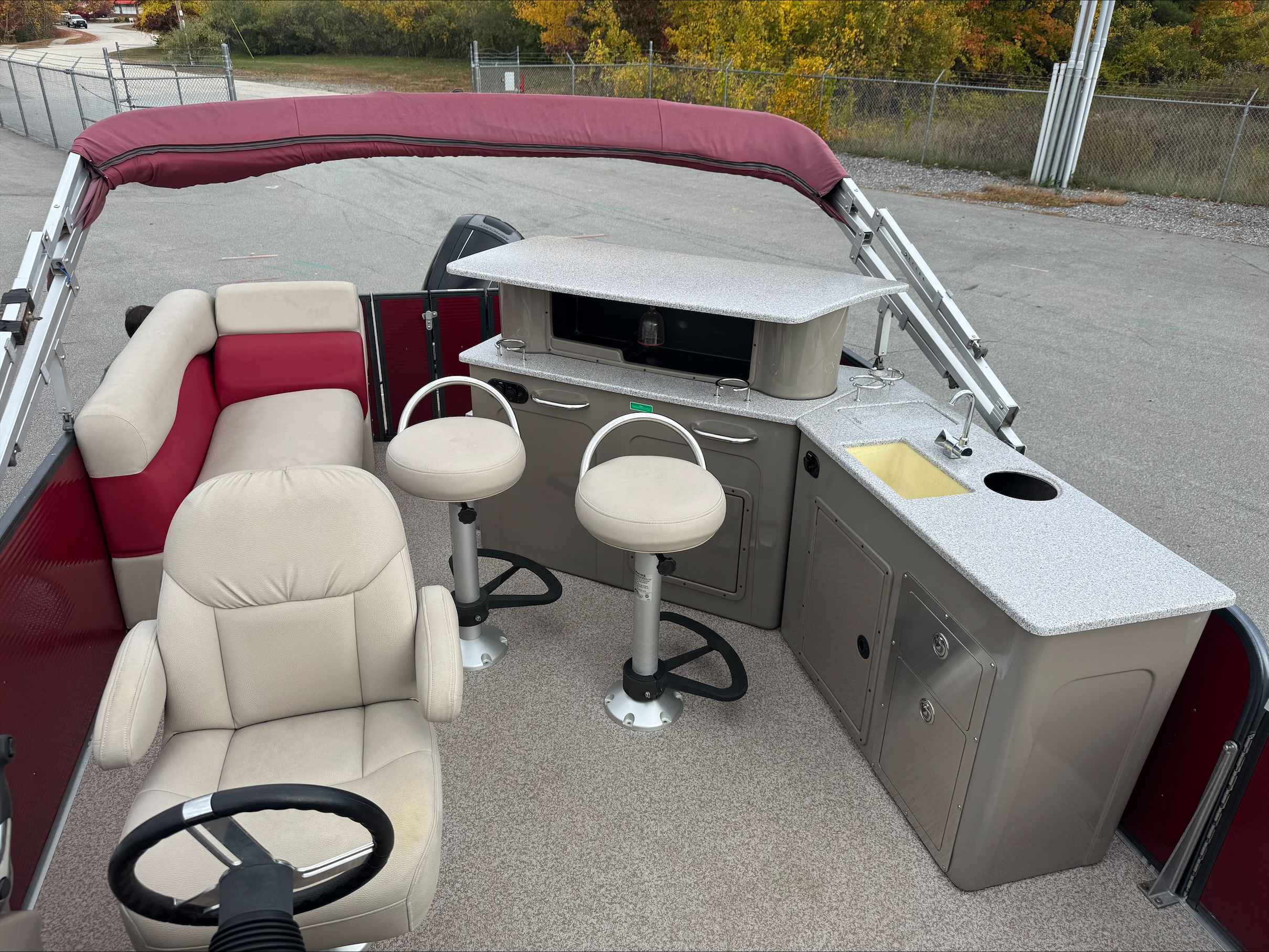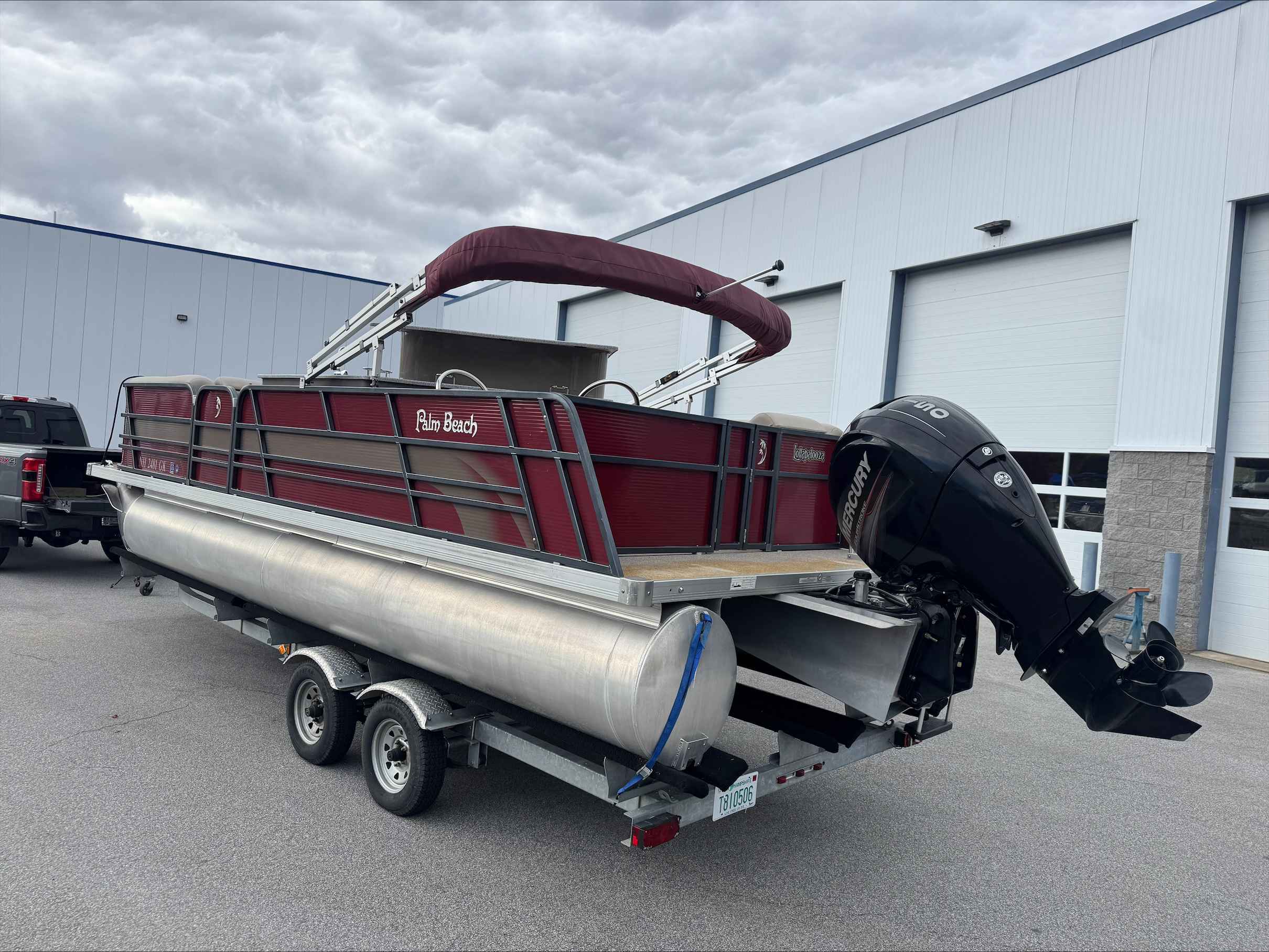 This 2015 Palm Beach 240, A pontoon with only 327 freshwater hours. Powered by a reliable Mercury 150 engine, it delivers smooth performance and efficient cruising on the water. The spacious layout offers plenty of room for family and friends, perfect for relaxing or entertaining. This boats layout with a bar area, refrigerator and this boat comes with a trailer. A great blend of comfort, style, and dependable power for your next adventure on the lake. Come check out this pontoon at Irwin Marine.